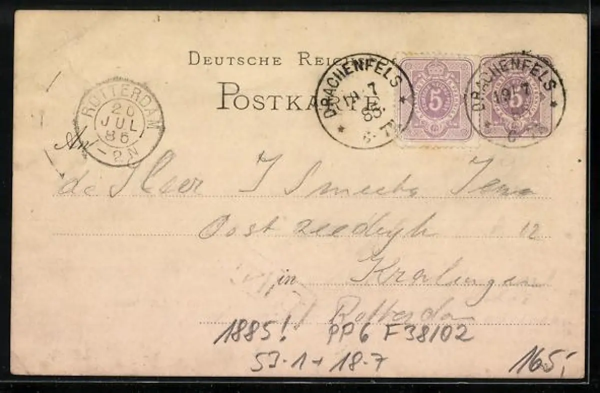 gelaufen 1885, Eckknicke re., guter Zustand