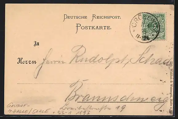 gelaufen 1893, Eckknick re. unten, guter Zustand
