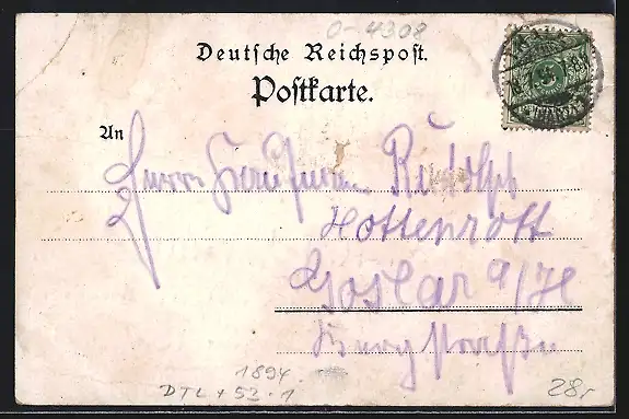 gelaufen 1894, Eckknick re. oben, guter Zustand
