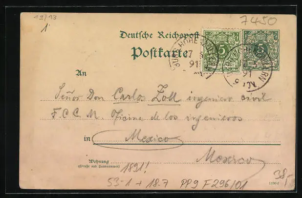 gelaufen 1891, Eckknicke unten, guter Zustand