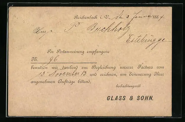 Vorläufer-Lithographie Reichenbach i. V., 1884, Glass & Sohn