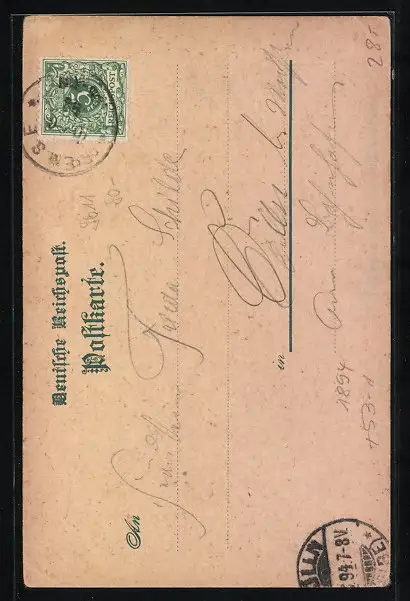 gelaufen 1894, Eckknicke li. oben u. re., guter Zustand