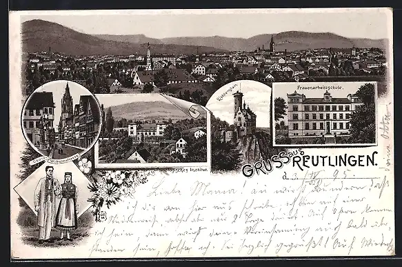 Vorläufer-Lithographie Reutlingen, 1895, Frauenarbeitsschule, Lichtenstein, Obere-Wilhelmstrasse