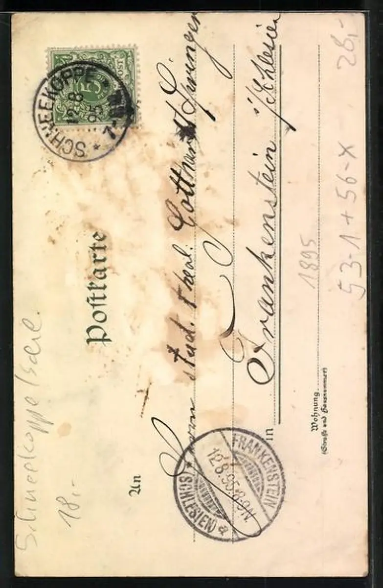 gelaufen 1895, Stempelspur, Eckknick li. unten, guter Zustand