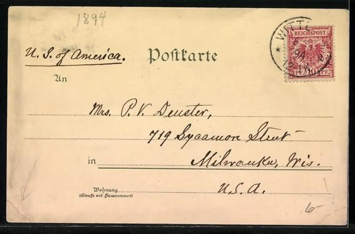 gelaufen 1894, Eckknicke links unten und rechts unten, sonst guter Zustand
