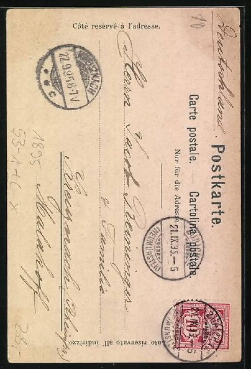 gelaufen 1895, Eckknicke oben und unten, guter Zustand