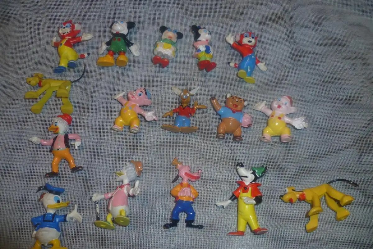 WALD DISNEY WORLD HEIMO Figuren 70er Jahre Konvolut bestehend aus 16 teilweise seltene Comic Figuren aus der Sammlervitrine