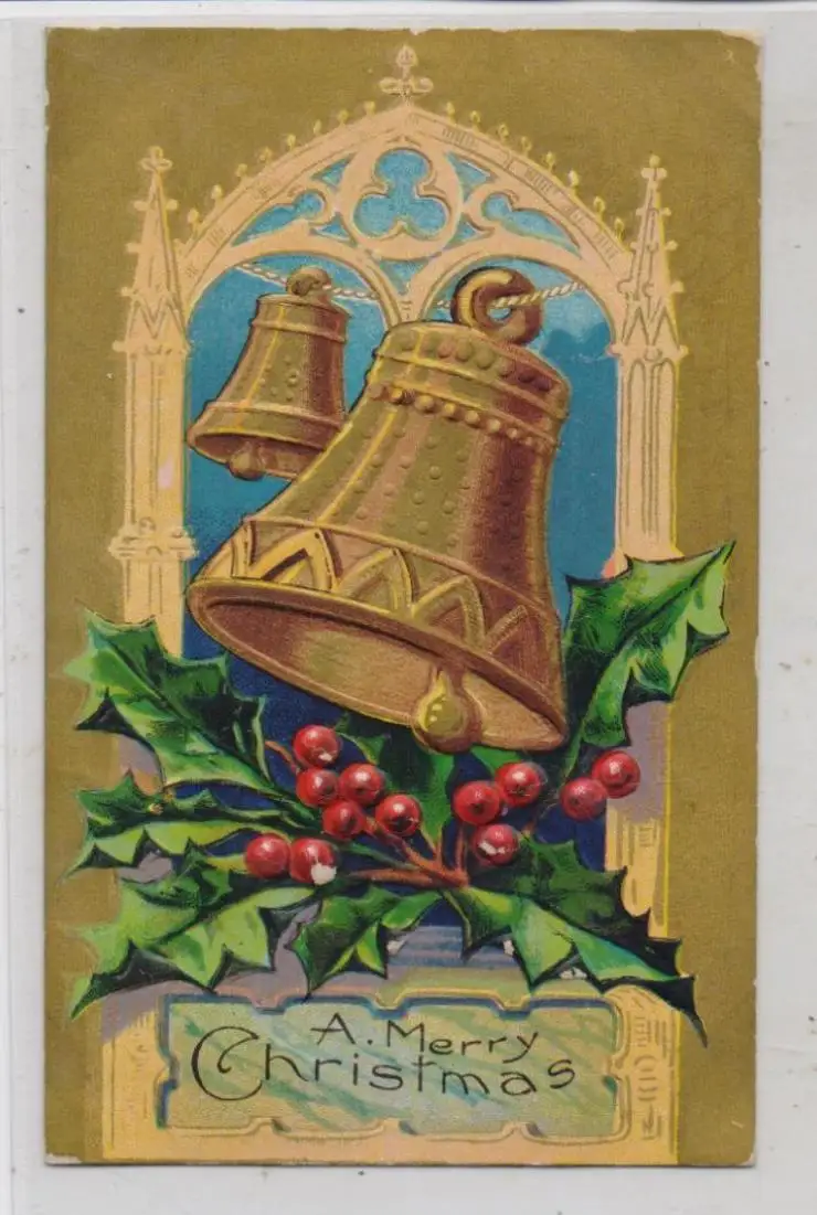 WEIHNACHTEN / CHRISTMAS, Glocken, Goldkarte gprägt / embossed / relief, 1900
