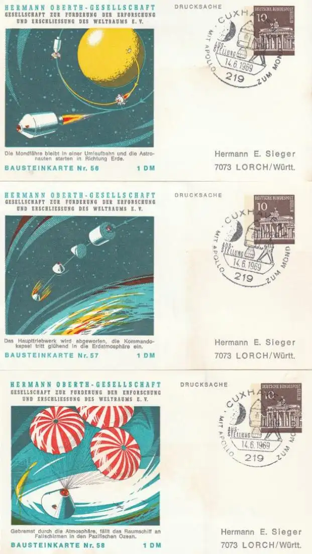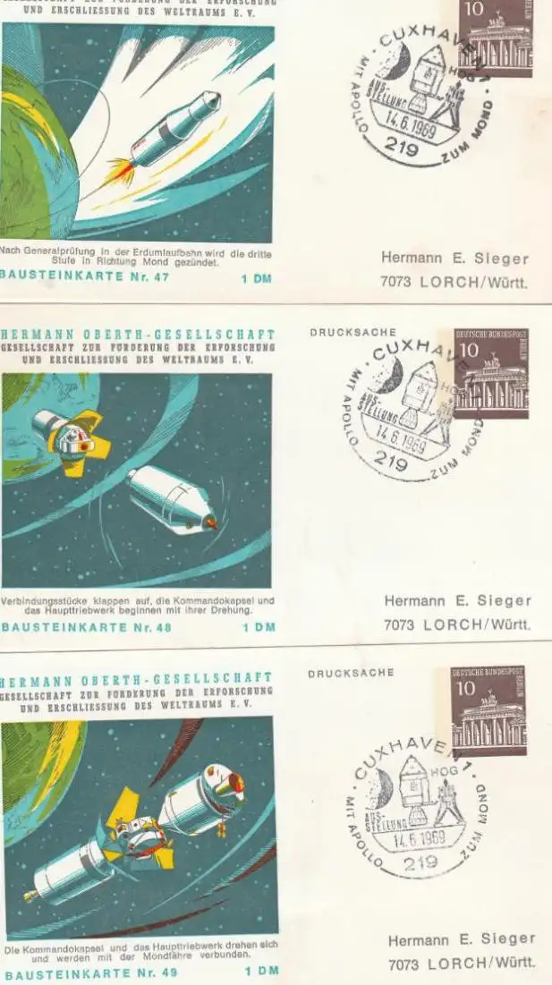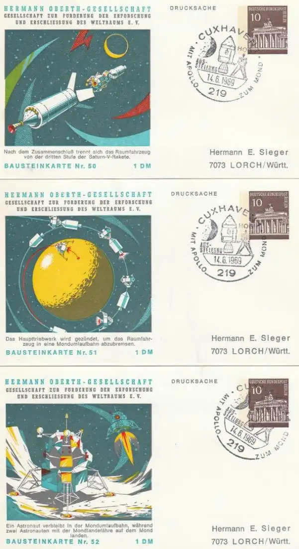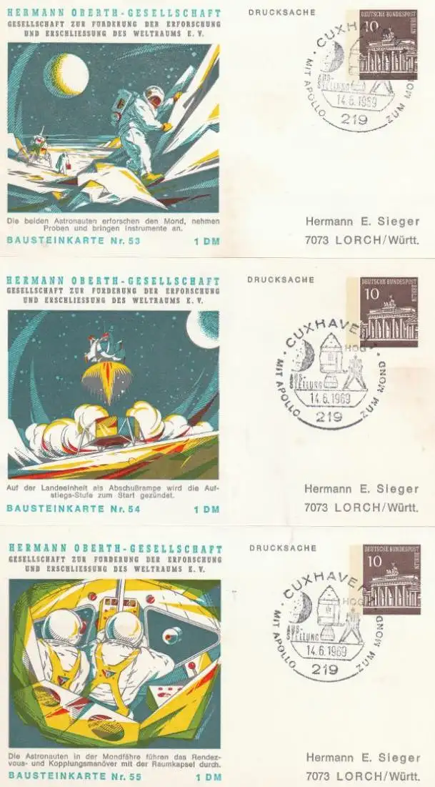 WELTRAUM / SPACE, Apollo-Mondflug auf 15 Privat-Ganzsachen / Apollo Moonflight Set of 15 Berlin Postal Stationeries