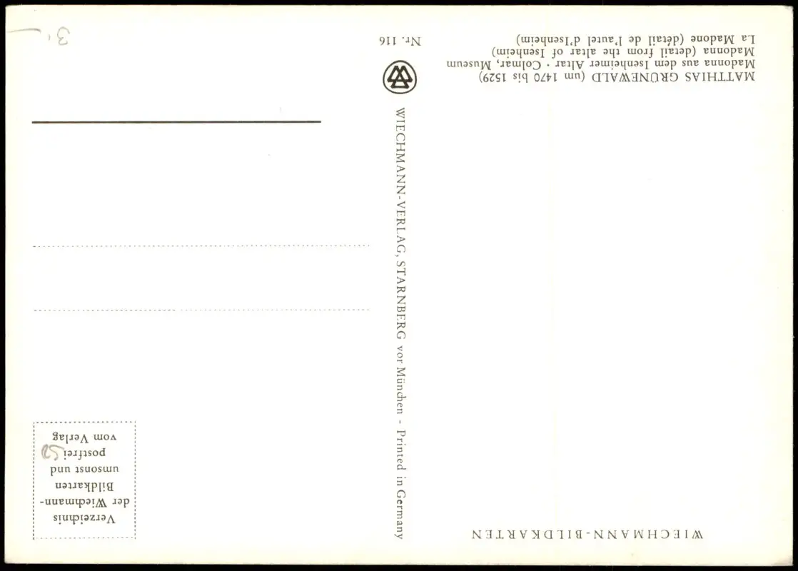 WIECHMANN-BILDKARTE MATTHIAS GRÜNEWALD Madonna aus dem Isenheimer Altar 1970