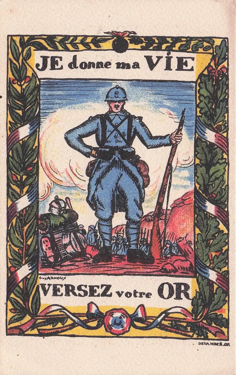 WWI French Bond Drive Raise Funds Poster Card I Give My Life Pay Your Gold -798004