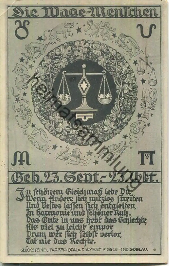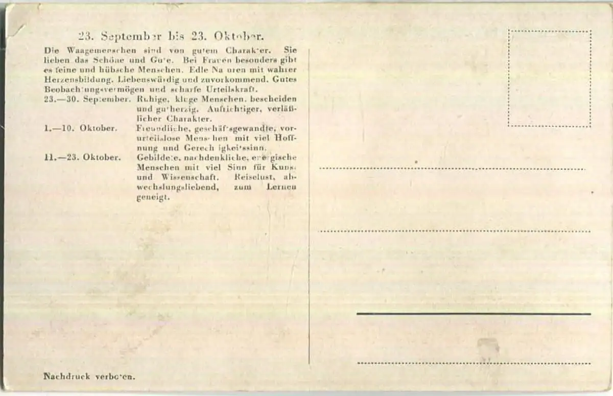 Waage - Rückseite Beschreibung der Eigenschaften - kleiner Eckknick oben links (E90760) *