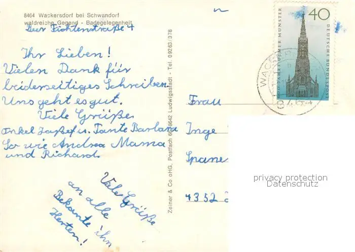 Wackersdorf Freibad Ortsansicht mit Kirche Brunnen Partie am See Wackersdorf postalisch gelaufen 1977 Erhaltung siehe scans [FriedD77] Frierer