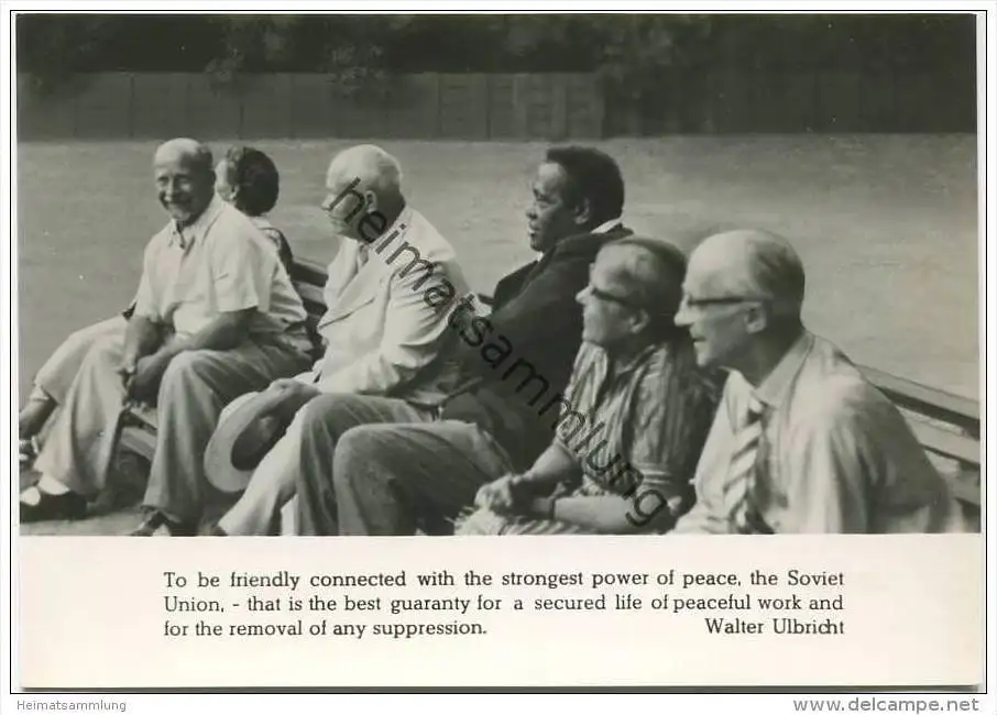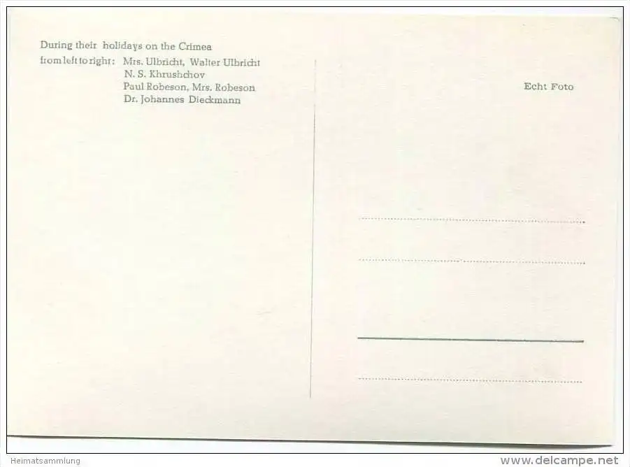 Während der Ferien auf der Krim von links Frau Ulbricht - Walter Ulbricht - N. S. Khrushchov - Paul Robeson - Frau Robeson - Dr. Johannes Dieckmann - Foto-AK Grossformat ca. 1960 (E12174)