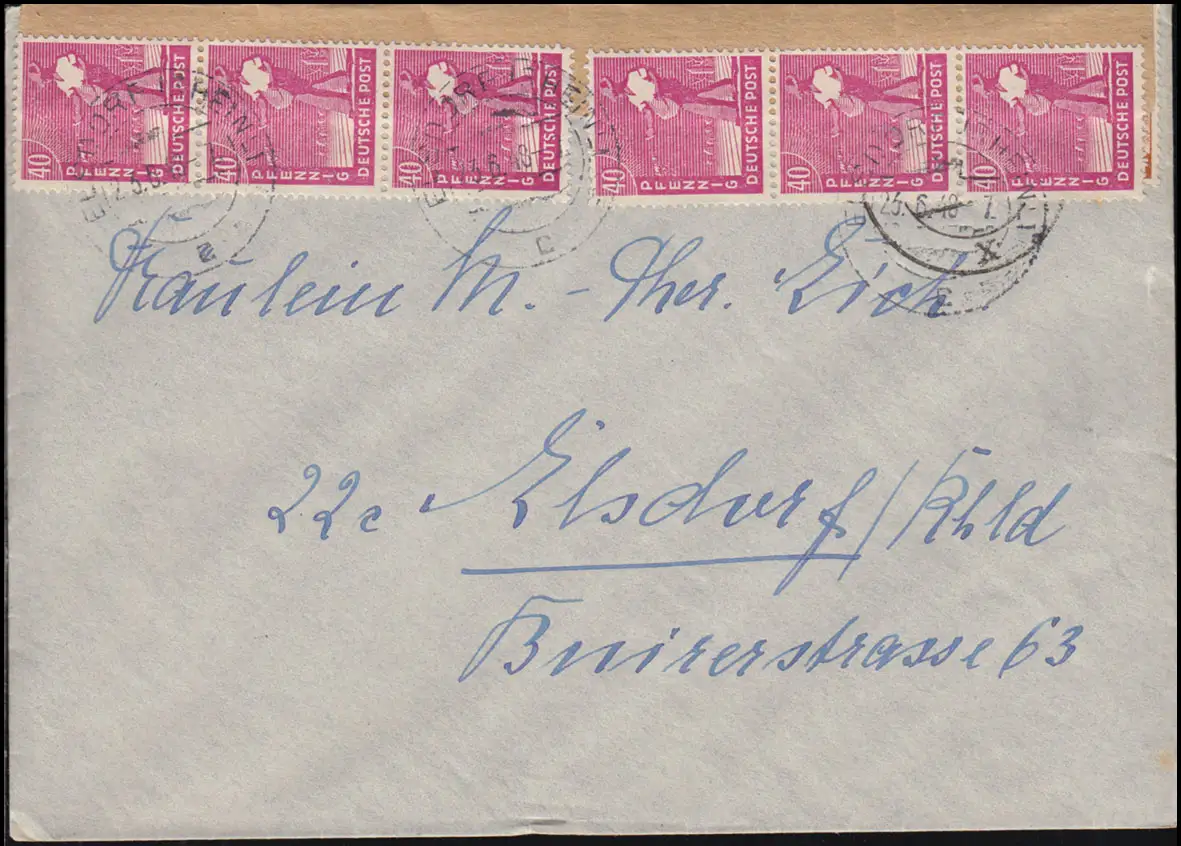 Währungsreform Zehnfachfrankatur 954 als MeF auf Fernbrief ELSDORF 23.6.1948