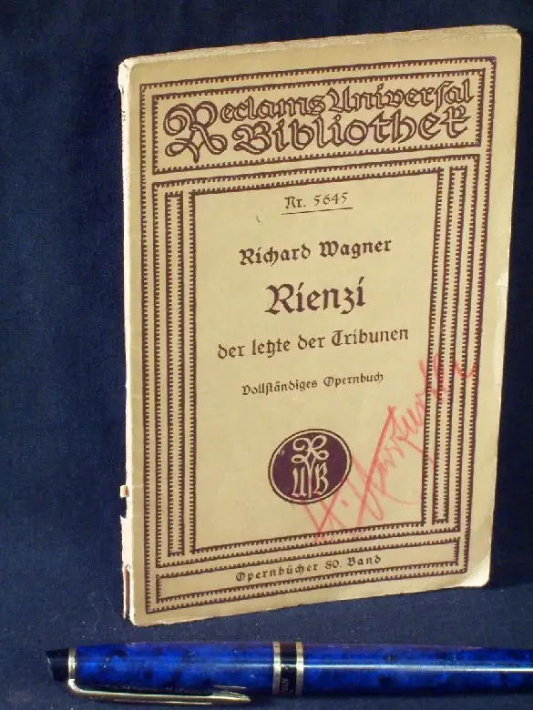 Wagner, Richard: Rienzi der letzte der Tribunen - Große tragische Oper in fünf Aufzügen (nach Bulwers gleichnamigen Roman) - Vollständiges Buch - aus der Reihe: Opernbücher / Reclams Universal Bibliothek - Band: 80 /5645 LAGERRÄUMUNG.