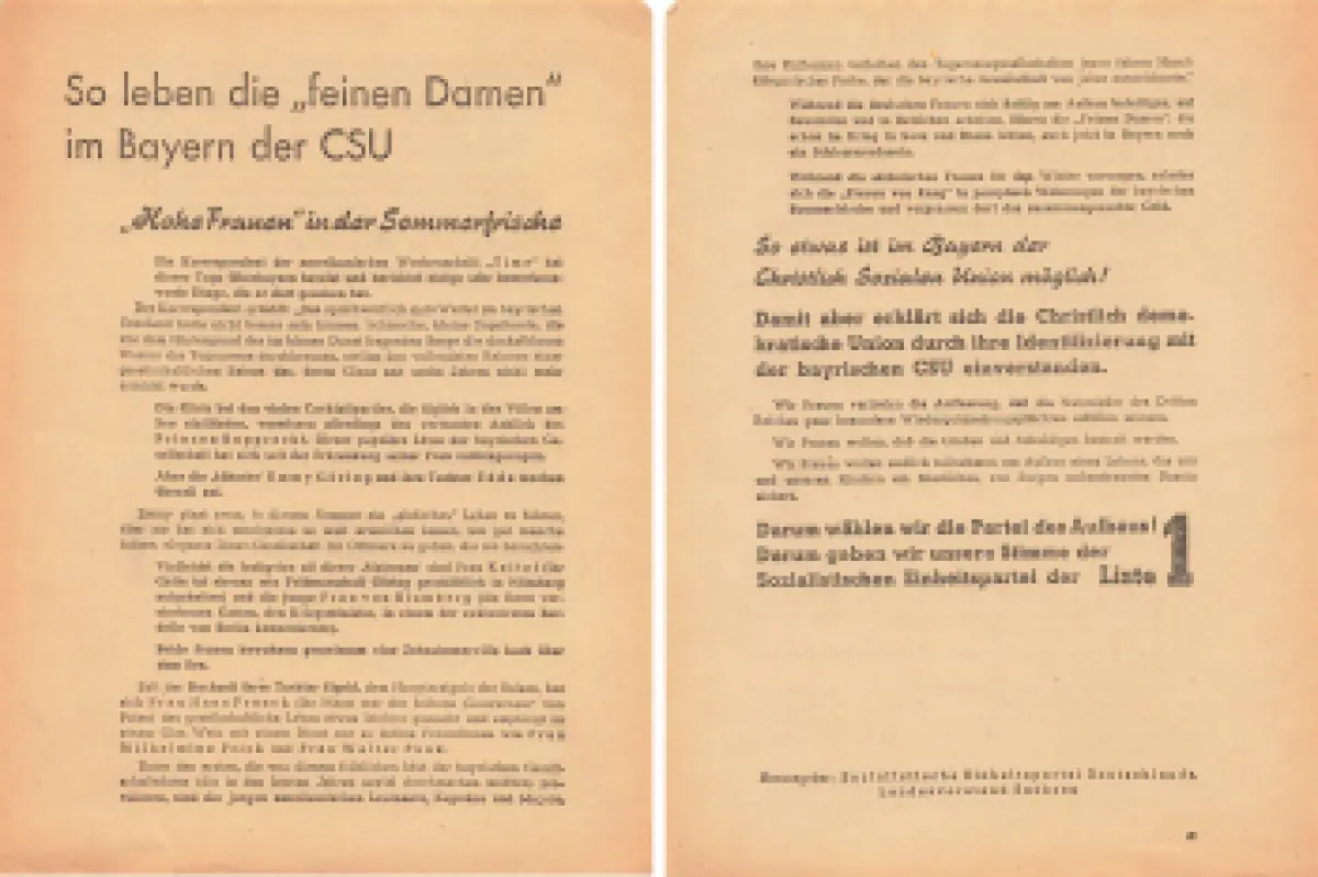 Wahlwerbung der SED Wahl 1946 "So leben die feinen Samen im Bayern der CSU" A5