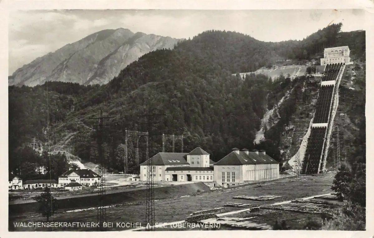 Walchenseekraftwerk bei Kochel am See Oberbayern Bayern Postkarte AK