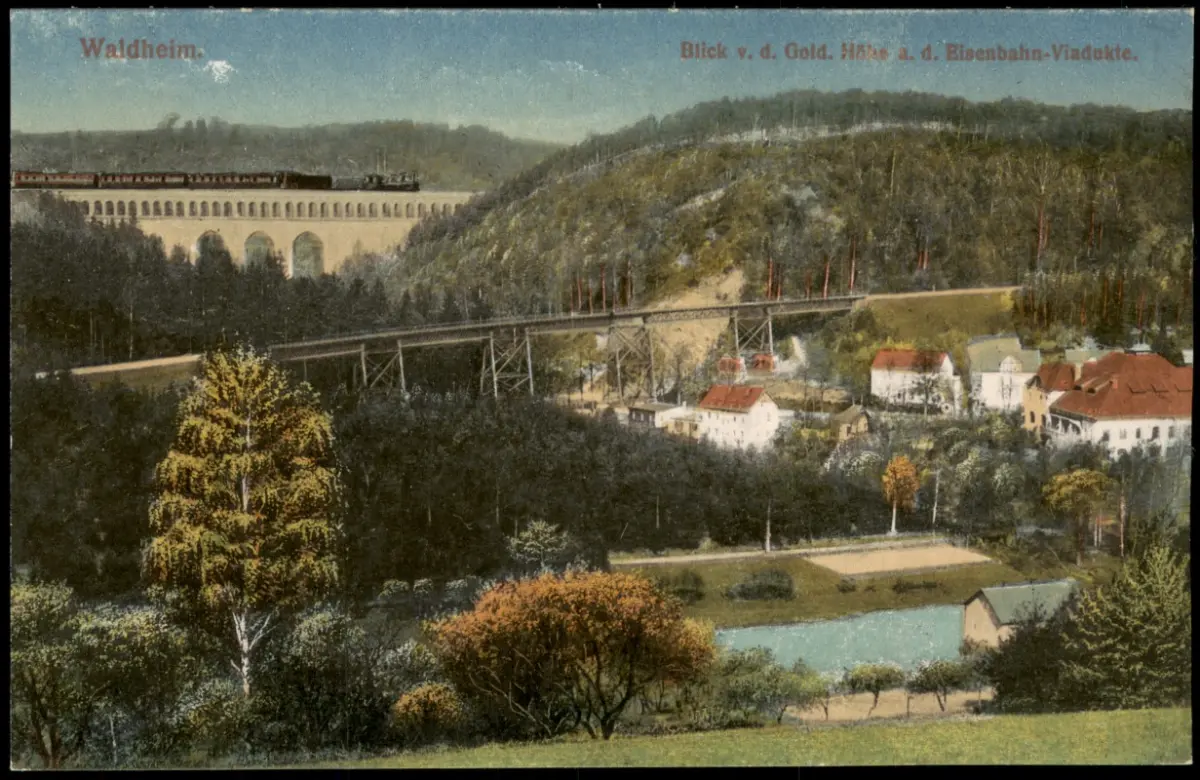 Waldheim (Sachsen) Blick v. d. Gold. Has a. d. Eisenbahn-Viadukte. 1914