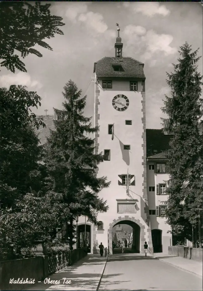 Waldshut-Waldshut-Tiengen Strassen Partie Oberes Tor, Turm-Gebäude mit Uhr 1965