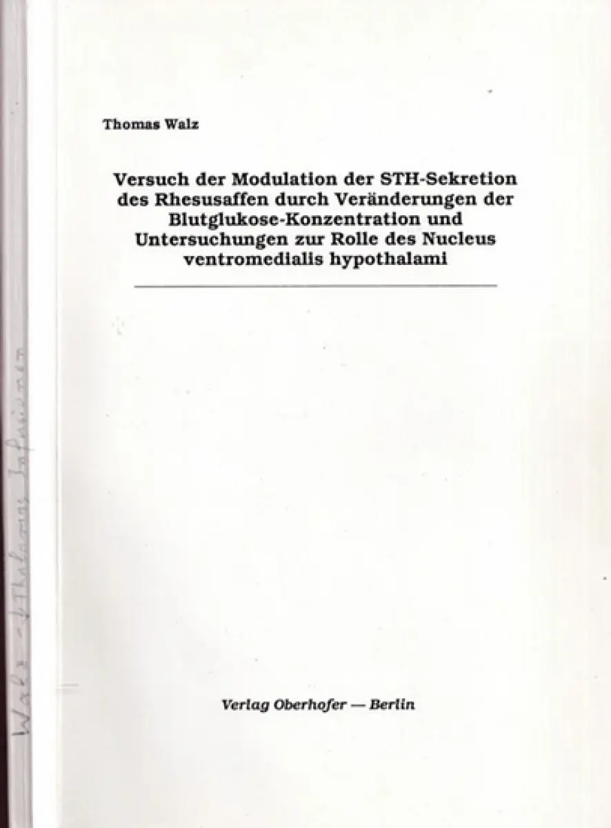 Walz, Thomas: Versuch der Modulation der STH-Sekretion des Rhesusaffen durch Veränderungen der Blutglukose-Konzentration und Untersuchungen zur Rolle des Nucleus ventromedialis hypothalami.