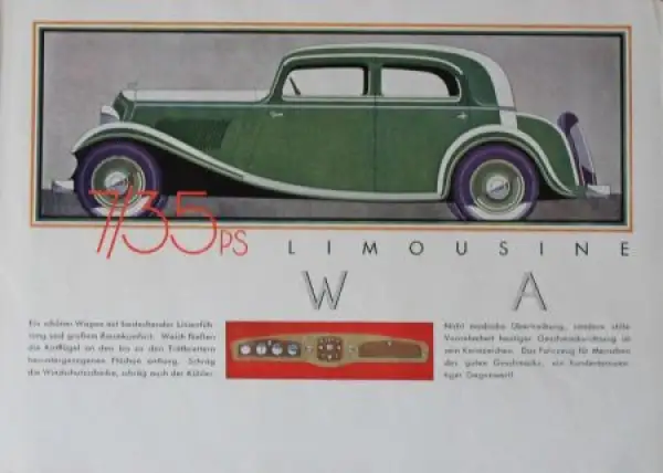 Wanderer 7/35 PS Modellprogramm 1933 Reuters Zeichnungen Automobilprospekt (0451)
