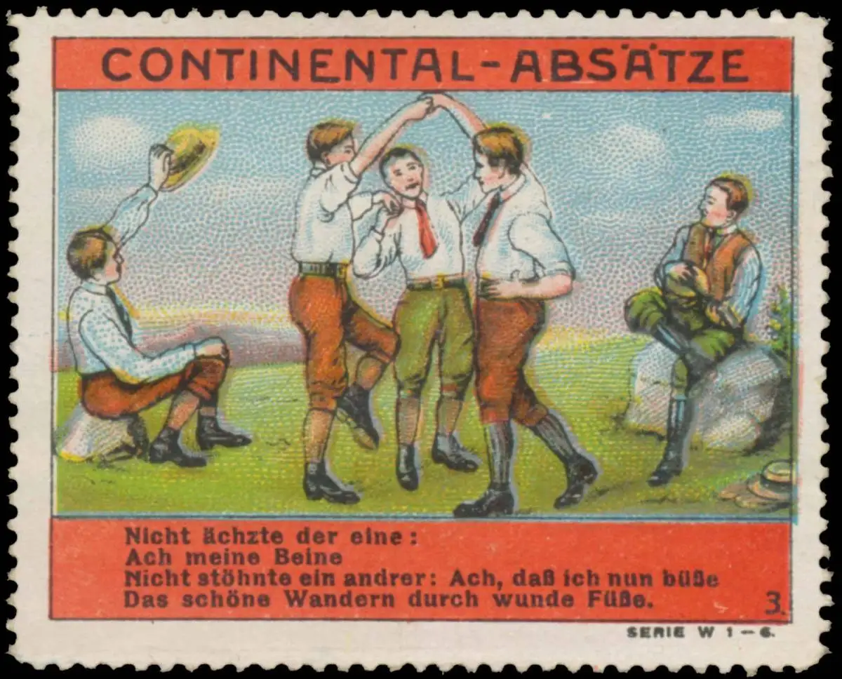 Nicht ächzte der eine: Ach meine Beine. Nicht stöhnte ein andrer: Ach, dass ich nur büsse das schöne Wandern durch wunde Füsse. Nr. 3, Größe/Zustand: 5x6 , guter Zustand, Original alte Reklamemarke die seinerzeit für die Werbung benutzt wurde
