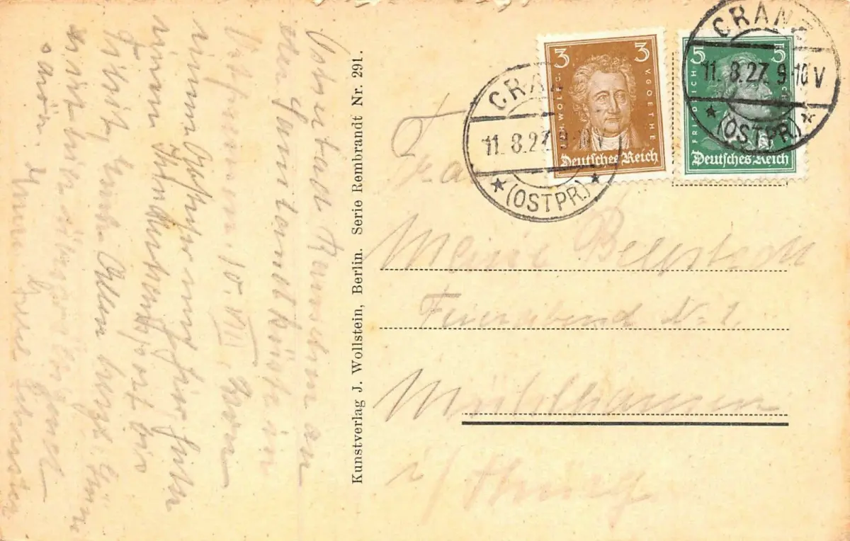 Rückseite: gelaufen 1927 von Cranz (Ostpr.)