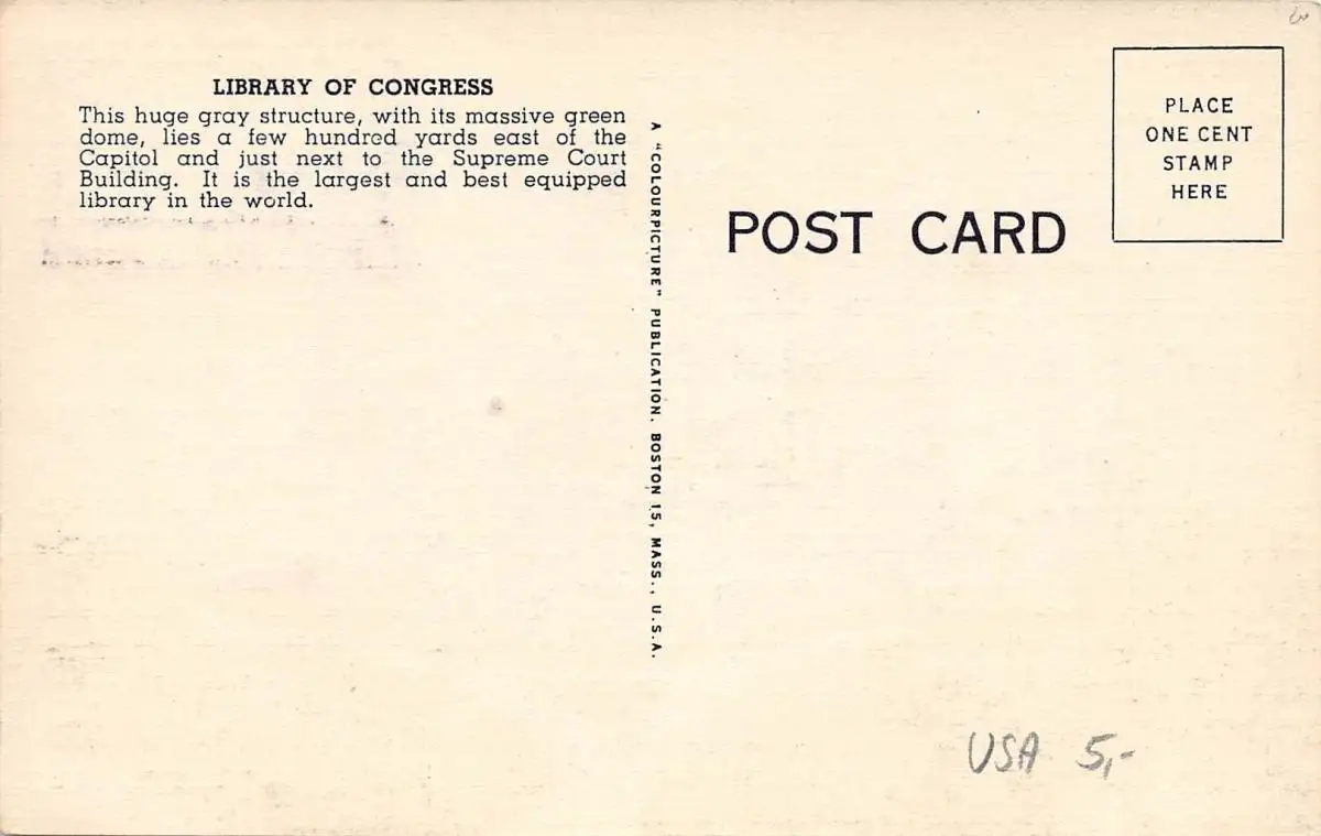 Washington D.C. Library of Congress With Stamp First day of Issue ngl 164.153