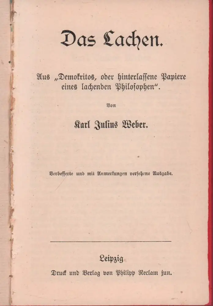 Weber, Karl Julius: Sammelbändchen mit 4 Teilen in 1 Band. Aus "Demokritos, oder Hinterlassene Papiere eines lachenden Philosophen". Verbesserte u. mit Anmerkungen versehene Ausgabe. (Hrsg. mit einem Vorwort von D. Haek).