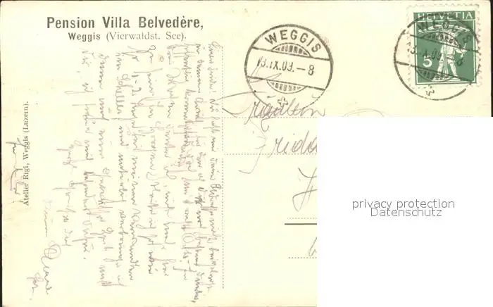 Weggis LU Pension Villa Belvedere Vierwaldstaettersee Boot Weggis postalisch gelaufen 1909 Erhaltung siehe scans Alte Ansichtskarte Postkarte hz Lmann
