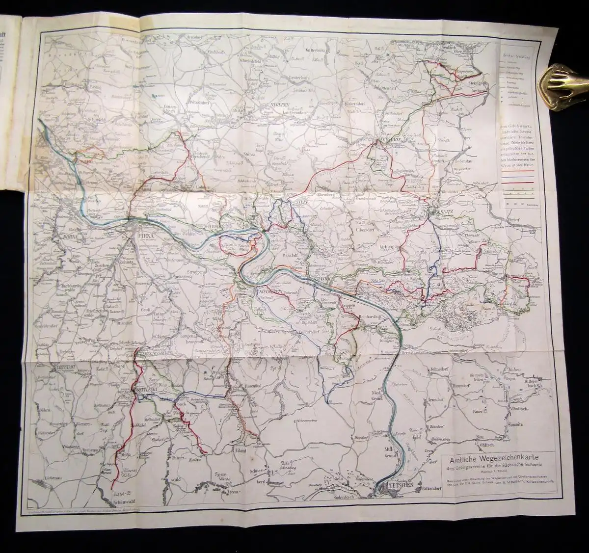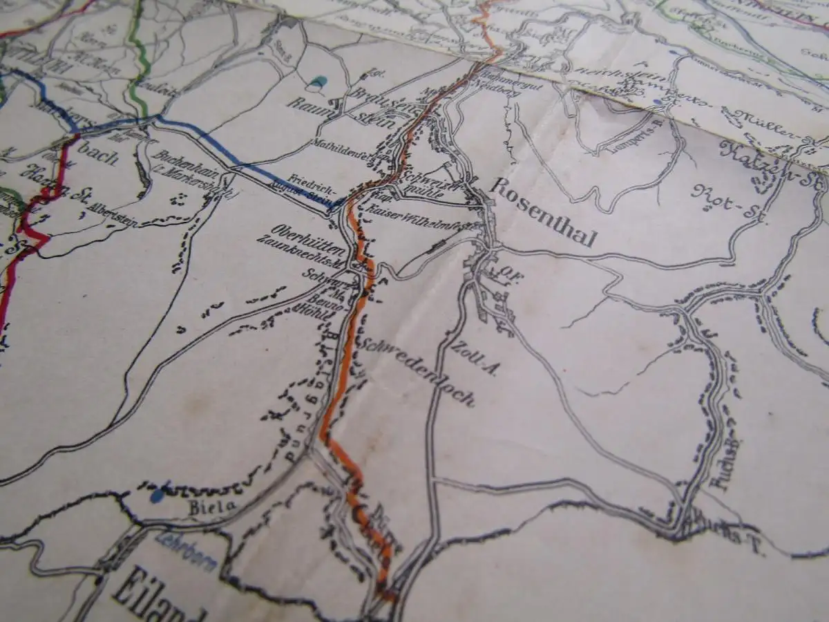 Einband stärker beschabt und bestoßen, vorderer Spiegel unten links mit Aufkleber. Papier stärker gebräunt. Ohne den Stadtplan, Karte mit Klebeband hinterlegten Rissen. Gutes Exemplar. Bilder sind Bestandteil der Zustandsbeschreibung.