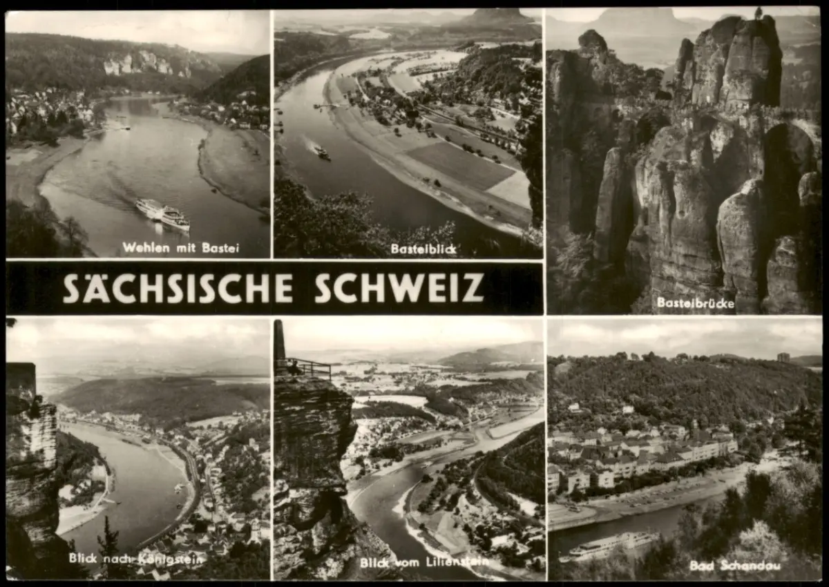 Wehlen mit Bastei, Basteiblick, Basteibrücke, Königstein, Bad Schandau 1970