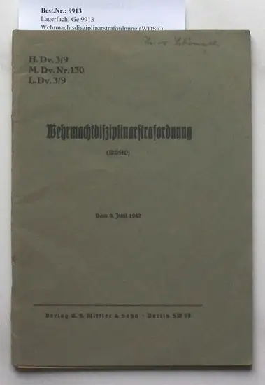Wehrmachtsdisziplinarstrafordnung (WDStO) H. Dv. 3/9. / M. Dv. Nr. 130. / L. Dv. 3/9. vom 6. Juni 1942.