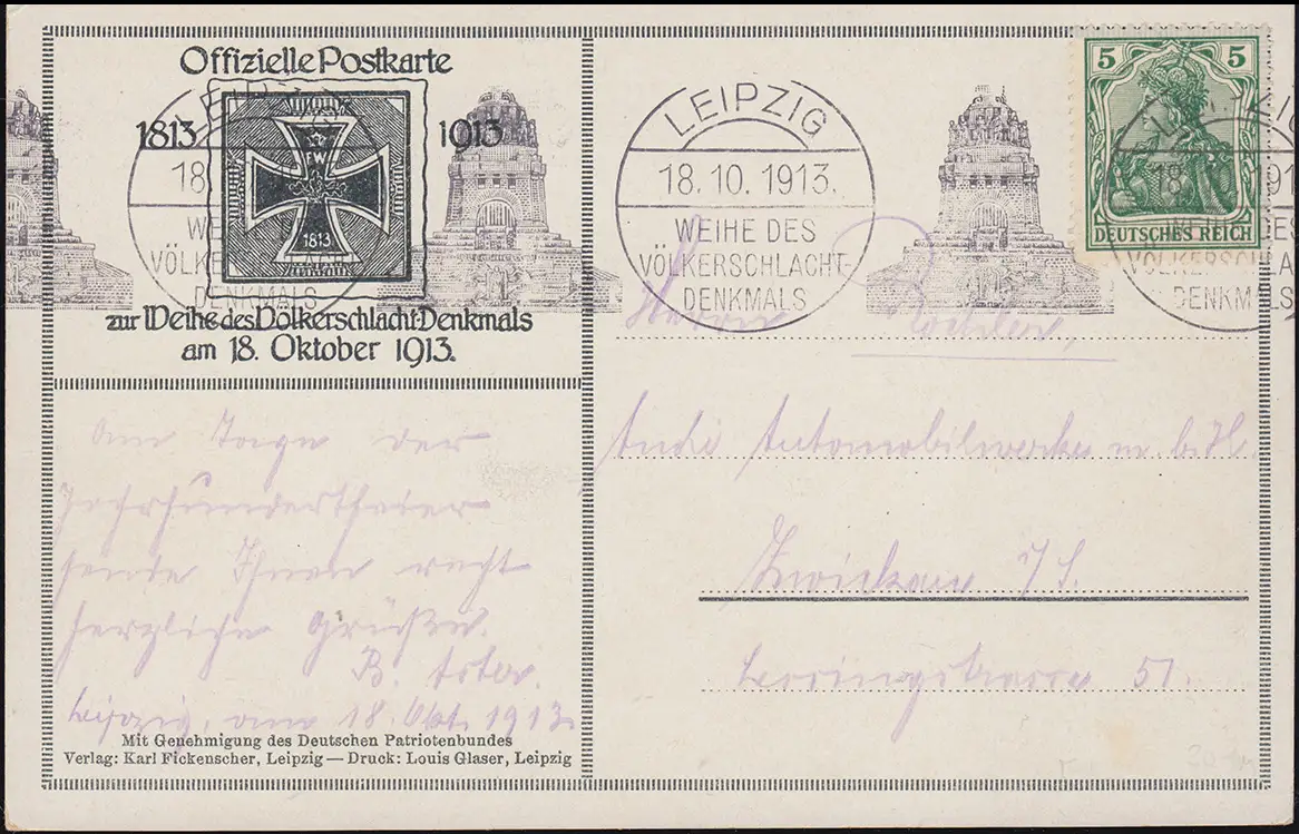 Weihe des Völkerschlachtdenkmals Leipzig passende AK mit SSt LEIPZIG 18.10.1913