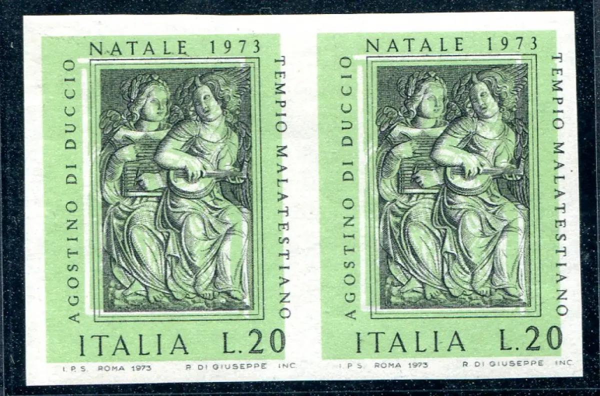 Weihnachten '73 Lire 20 Paar ungezahnte Sorten Vollgummi (MNH) - Weihnachten '73 Lire 20 Nr. 1235 Paar horizontal ungezähnt (Sächsische Spec. n. 852Ea) - ein Exemplar mit leichtem Falz - Seltener Code Nr. 689/2