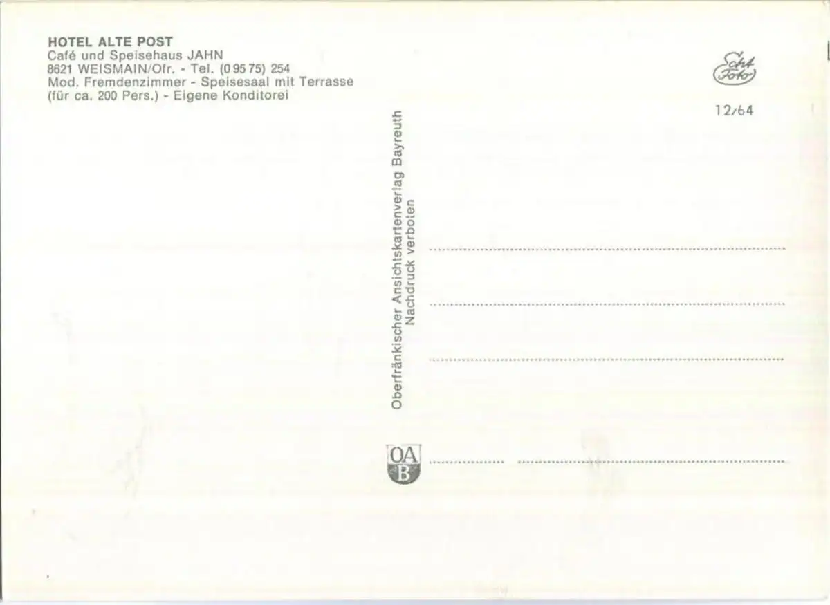Weismain - Cafe Hahn - Hotel Alte Post - Oberfränkischer Ansichtskartenverlag Bayreuth (E99921) *