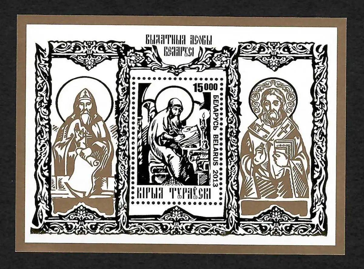 Weissrussland 2013: Heiliger Kyrill von Turau mit Goldaufdruck, #952, Block #101