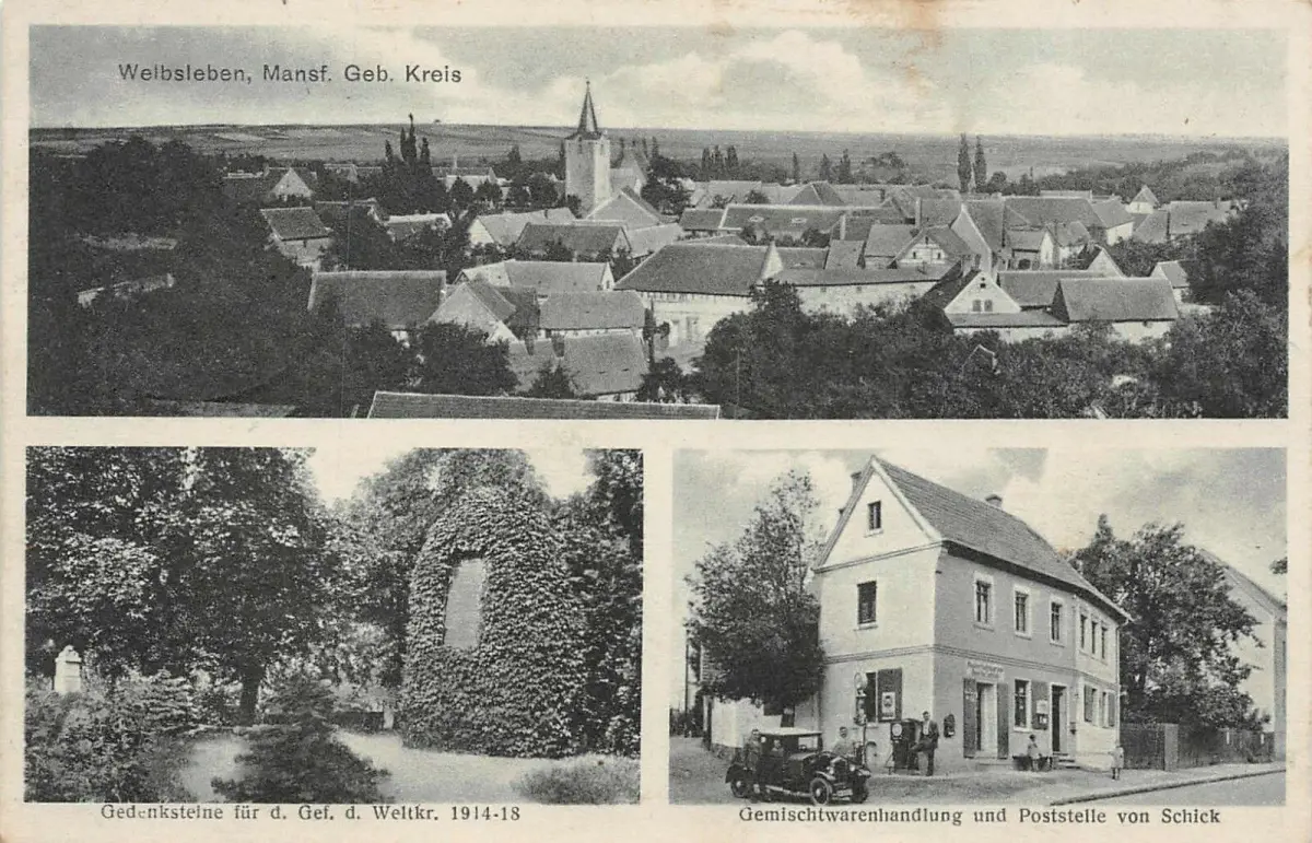 Welbsleben Mansf. Geb. Kreis Südharz Gedenksteine Gemischtwarenhandlung AK 1930