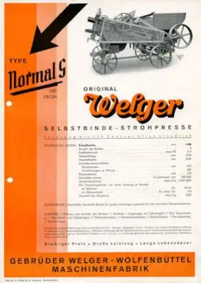 Welger NORMAL S Strohpressen Prospekt 1937