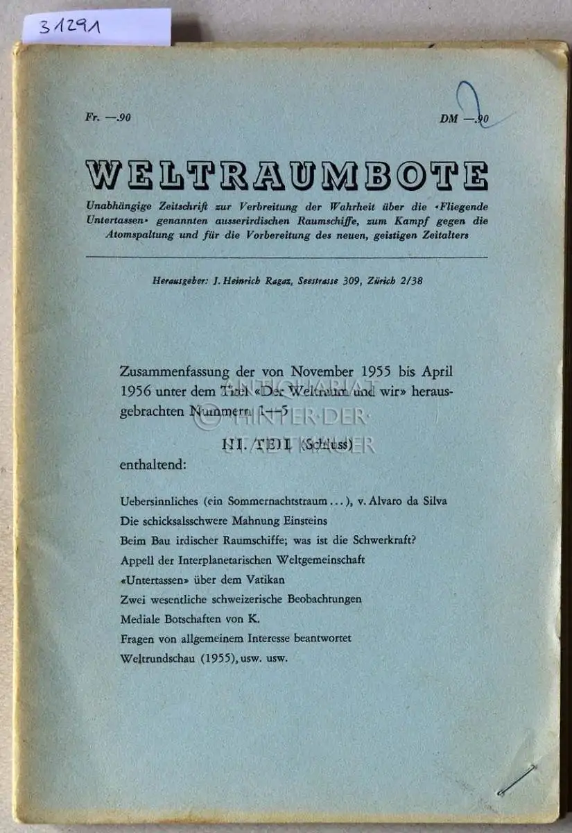 Weltraumbote. (5 Hefte: Nr. 3; 16/17 [1957], 20/21 [1957], 22/23 [1957], 66/67 [1961]) Hrsg. J. Heinrich Ragaz.