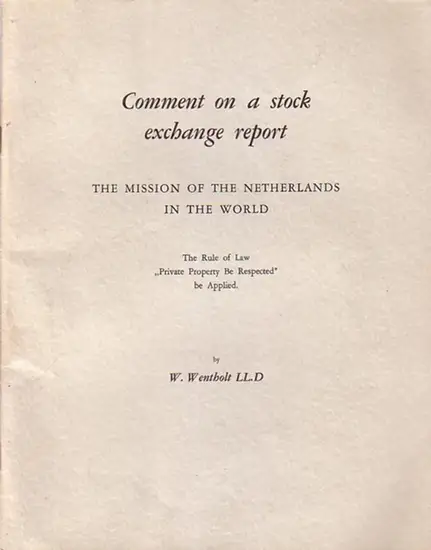 Wentholt, W: Comment on a stock exchange report. The mission of the Netherlands in the world. The Rule of Law 'Private Property be respected' be Applied.