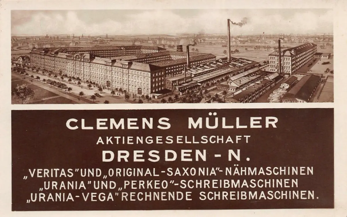 Werbekarte Schreibmaschinen Firma Clemens Müller in Dresden Sachsen Postkarte