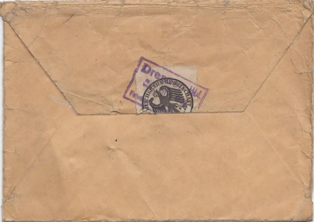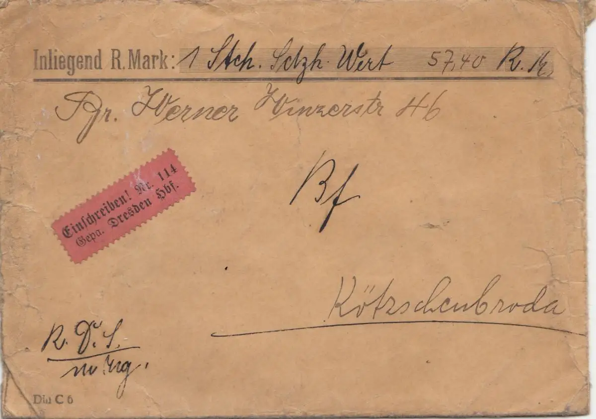Wertbrief Einschreiben per Bahnpost Verschlussvignette Reichsbahn Dresden Hbf