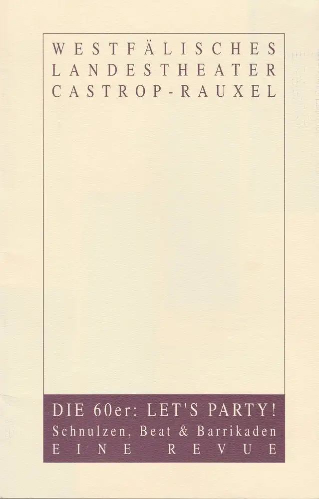 Westfälisches Landestheater Castrop-Rauxel, Herbert Hauck, Gösta Courkamp: Programmheft DIE 60ER: LET`S PARTY. Schnulzen, Beat & Barrikaden. Eine Revue Premiere 14. April 1994 Stadthalle Castrop-Rauxel.