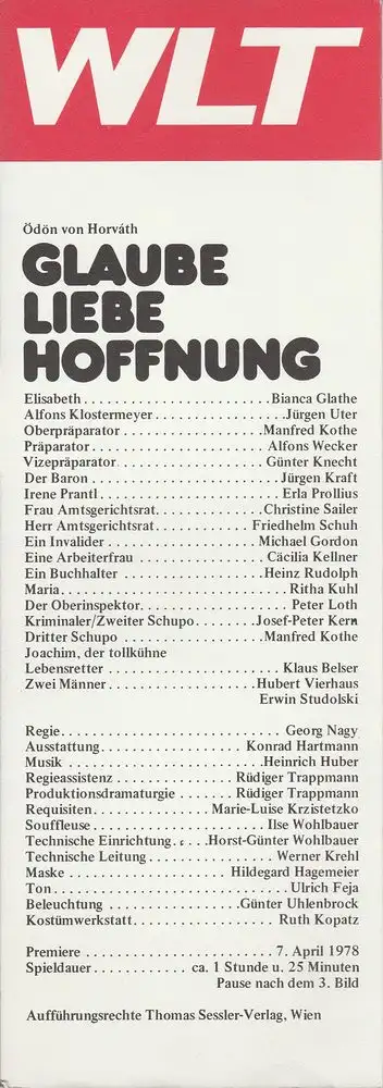 Westfälisches Landestheater WLT, Frieder Weber, Ernst Franz, Rüdiger Trappmann: Programmheft Ödön von Horvath GLAUBE LIEBE HOFFNUNG Premiere 7. April 1979.