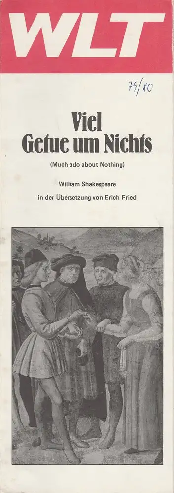 Much ado about Nothing. In der Übersetzung von Erich Fried. Regie: Peter Dieter Schnitzler, Rüdiger Meinel. Ausstattung: Siegfried Heinzmann. Musik. Eberhard Drewniok. Kostüme: Ruth Kopatz. Mitwirkende: Werner Graefke, Michel Oenicke, Bernhard Schramm, Gabriele Bauhofer, Gudrun Smytzek, Kai Arnold, u. a. - Theaterprogramm, Opernprogramm, Ballettprogramm, Musicalprogramm, Konzertprogramm, Theatermemorabilia, Programmhefte Sammlung, deutsche Theatergeschichte.