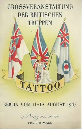Titel: Tattoo. Programm der Grossveranstaltung der britischen Truppen vom 11.-16. August 1947 auf dem Maifeld-Stadion Berlin. Erinnerungsprogramm - Buntes Nachtspiel. Millionen Lichter der Britischen Verbände