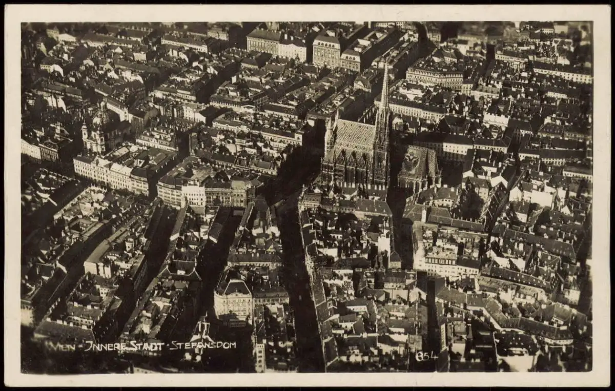 Wien INNERE STADT STEFANSDOM vom Flugzeug aus, Luftaufnahme 1930