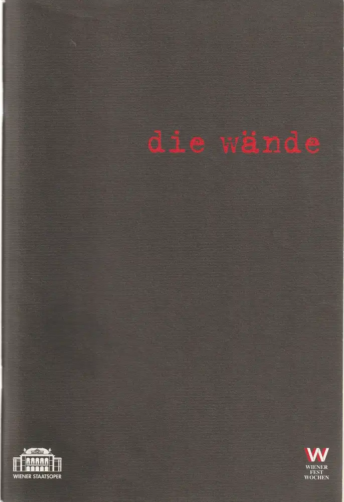Wiener Festwochen 1995, Wiener Staatsoper, Theater an der Wien, Klaus Bachler, Christian Baier, Klaus-Peter Kehr, Karin Reitter: Programmheft Uraufführung Adriana Hölszky DIE WÄNDE 27. Mai 1995 Festspielhaus.